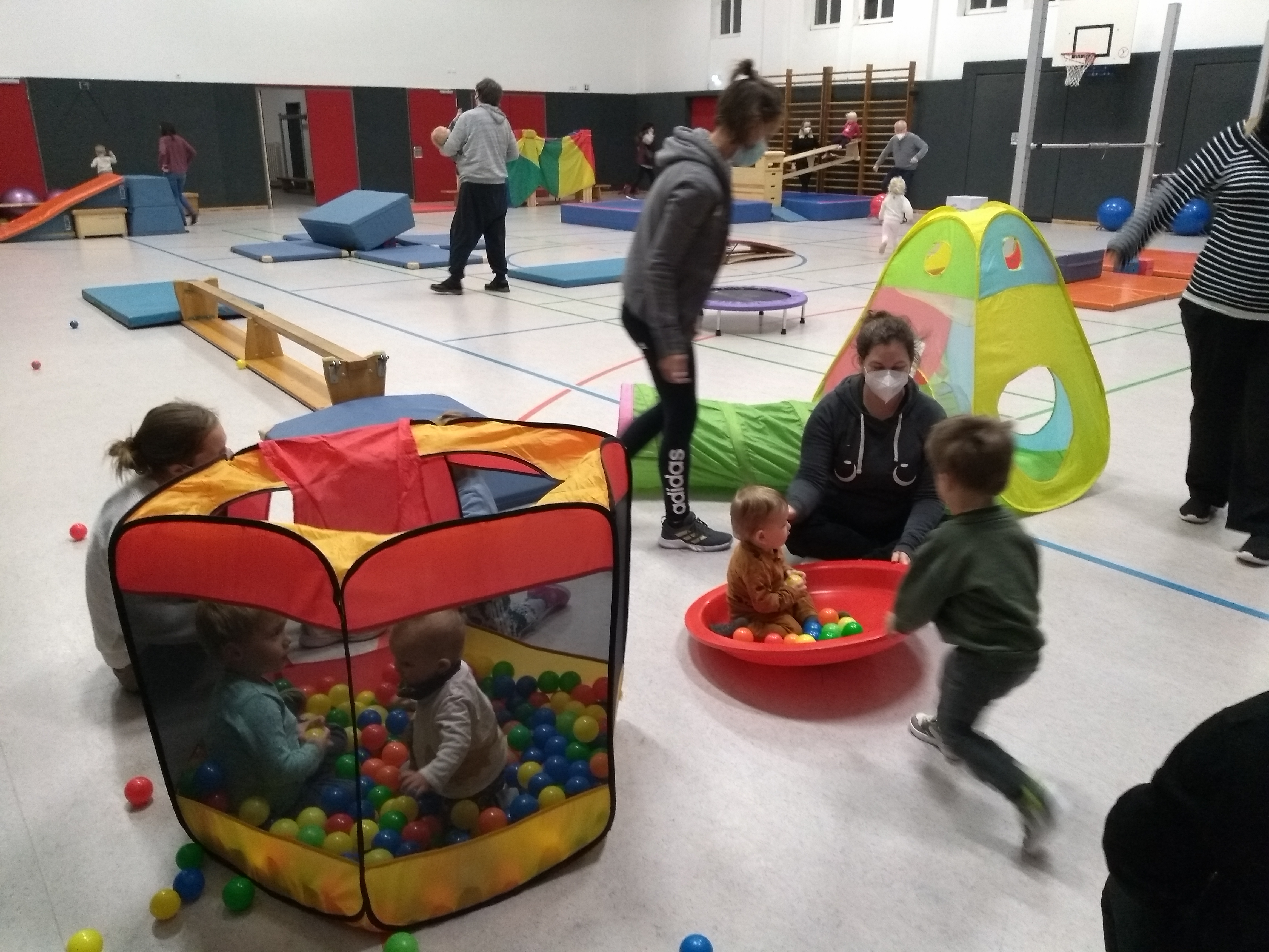 Da einige Familien mit kleinen Kindern gerne zusammen zum Turnen kommen, wurde für sie eine vierte Gruppe eingeführt, das Familienturnen, das auch immer gut besucht wurde.
